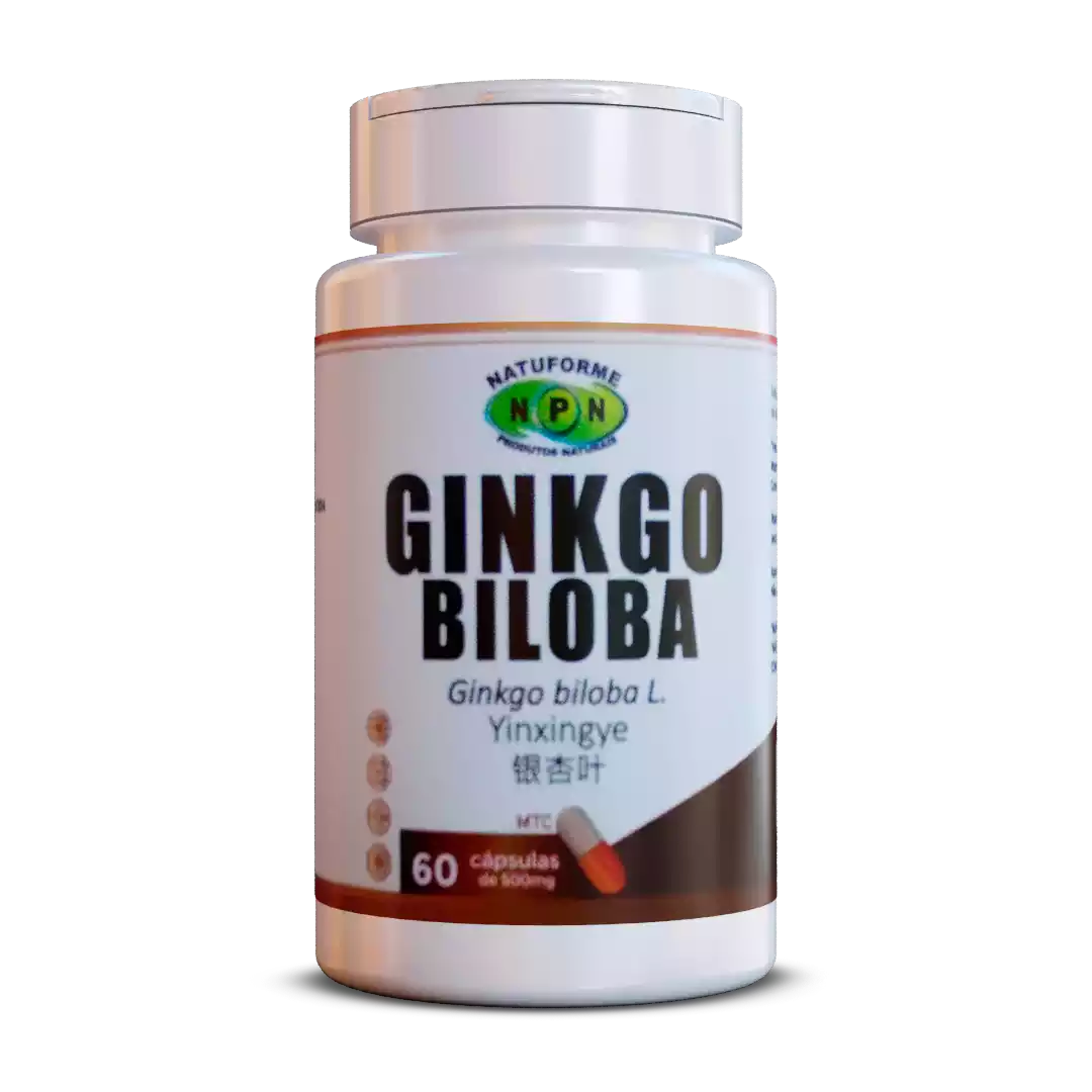 Folhas de ginkgo biloba em pó (Ginkgo folium), cápsula de gelatina.